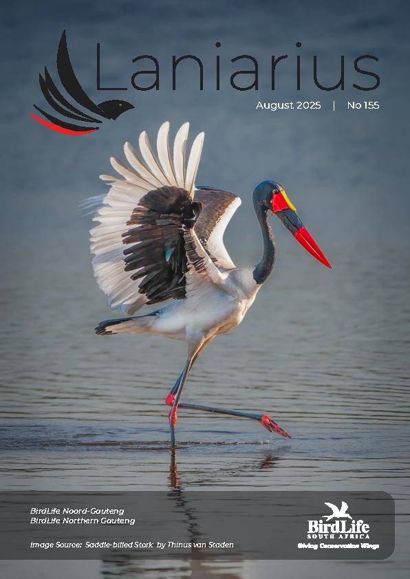 Laniarius, named for the club’s symbol, Laniarius atrococcineus – the Crimson-breasted Shrike, is BirdLife Northern Gauteng’s newsletter/magazine. Laniarius is published three times a year (April, August, December) and features members’ accounts of their birding highlights on BLNG outings and camps as well as their own travels and everyday lives. News and interesting information about bird conservation, research, biology and behaviour is also shared.