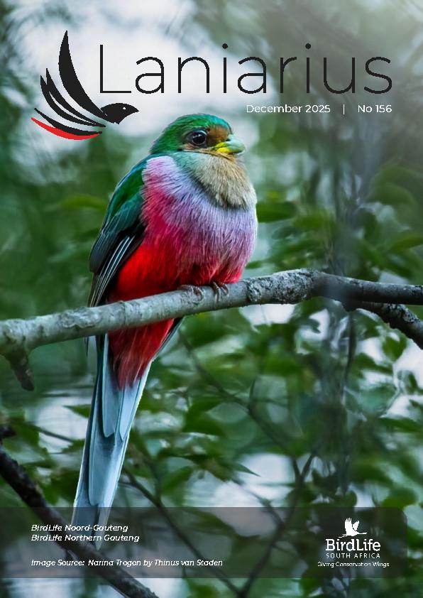 Laniarius, named for the club's symbol, Lanarius atrococcineus the Crimson-breasted Shrike, is BirdLife Northern Gauteng's newsletter/magazine. Laniarius is published three times a year (April, August, December) and features members' accounts of their birding highlights on BLNG outings and camps as well as their own travels and everyday lives. News and interesting information about bird conservation, research, biology and behaviour is also shared.